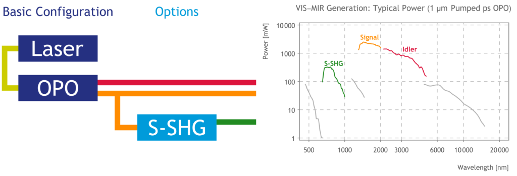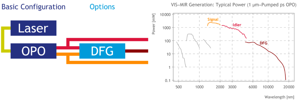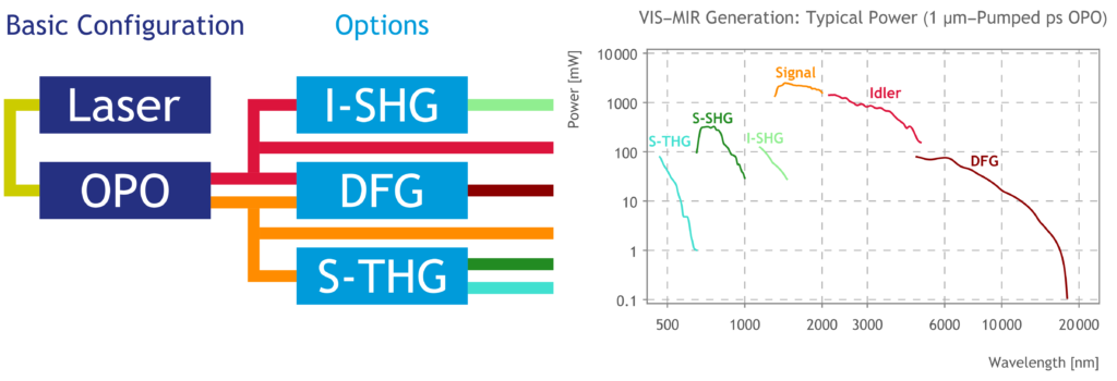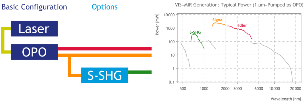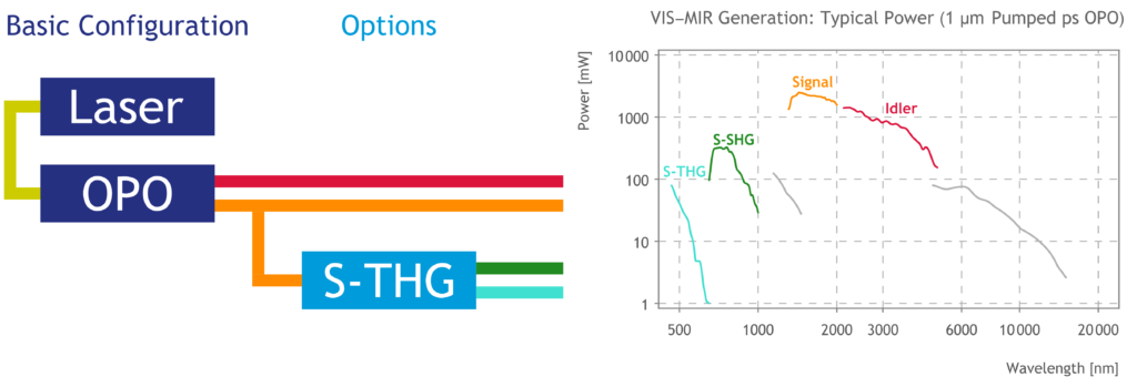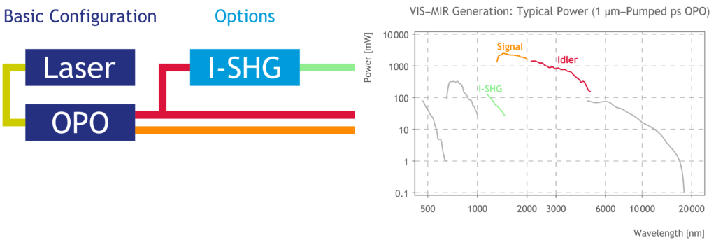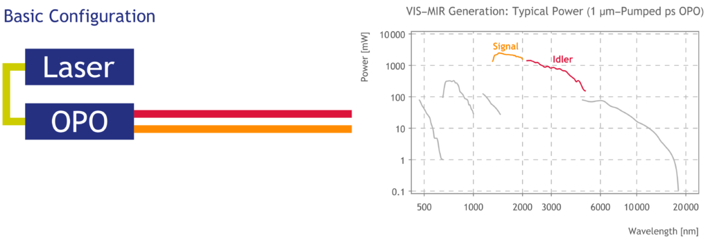 Systems can be further customized using pulse pickers (pulseSelect) to reduce the repetition rate, spectral slicers (pulseSlicer) for bandwidth reduction and optical delay lines (scanDelay). Multiple OPOs can also be pumped simultaneously by a single pump laser to generate independent, tunable, and temporally synchronized pulses.